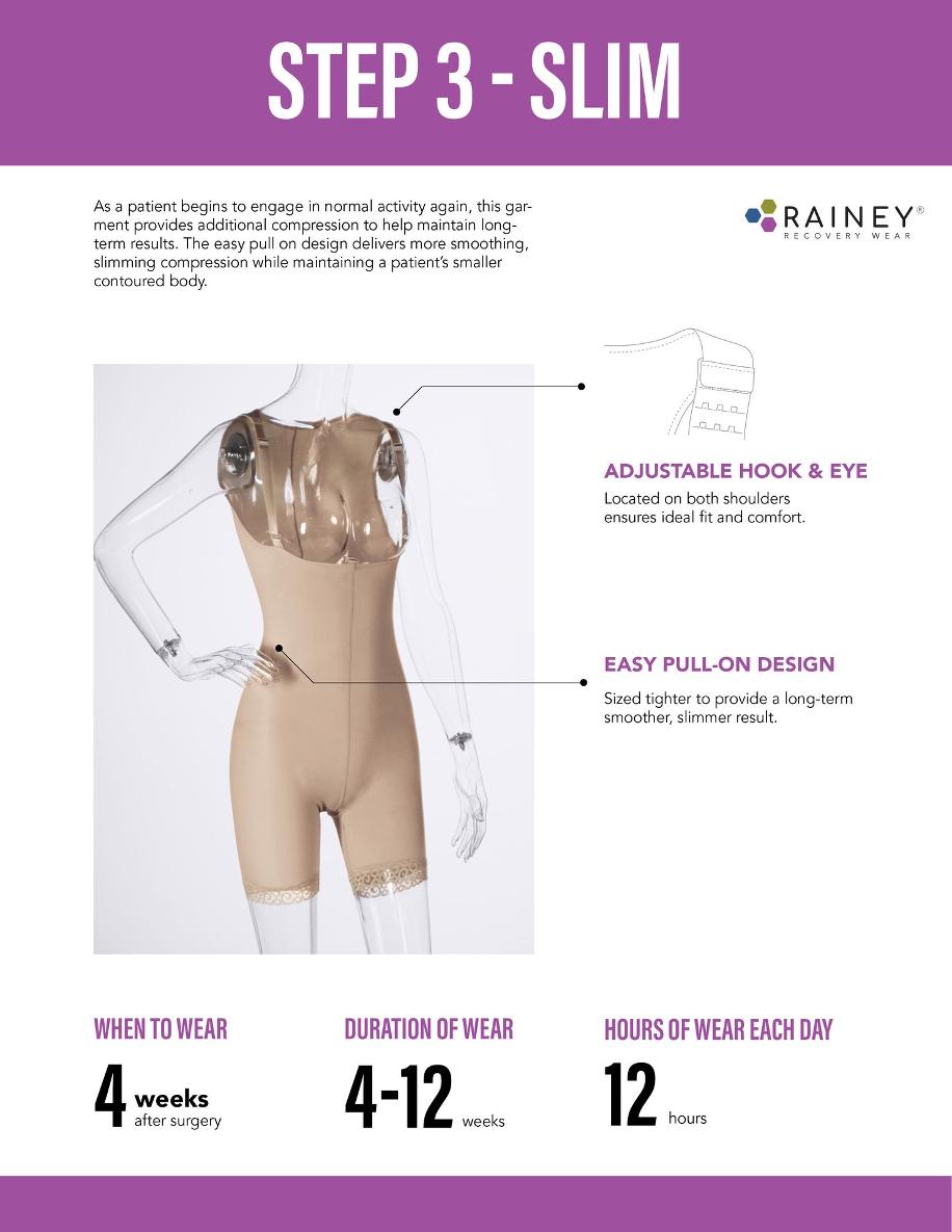 The STEP 3: Women's High Back Suit - WH3 is the perfect choice for the final stage of post-surgical recovery, combining ultimate comfort, support, and innovative design. Trust Rainey Recovery Wear for high-quality and reliable recovery garments.